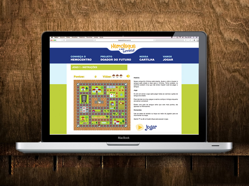 Visando facilitar o aprendizado das crianças sobre a doação de sangue, jogos foram desenvolvidos para transmitir ensinamentos sobre o tema. Com uma linguagem fácil, as crianças aprendem brincando.
