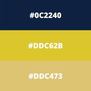 Azul-marinho, amarelo e bege que transmite otimismo e profissionalismo.